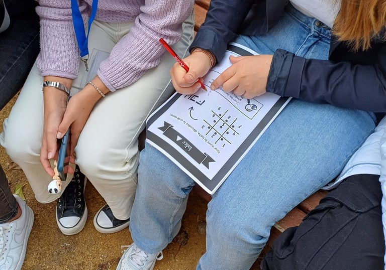 Juego de pistas en el que el alumnado resuelve pequeñas pruebas para descubrir información sobre un lugar secreto.