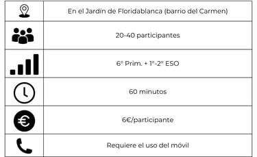 Este juego de pistas, organizado en el Jardín de Floridablanca, invita a los y las participantes a descubrir un lugar secreto vinculado con la cultura francesa. Para ello, deberán encontrar pequeños QR y realizar digitalmente una actividad. Tras cada éxito, obtendrán una pista para adivinar el lugar.